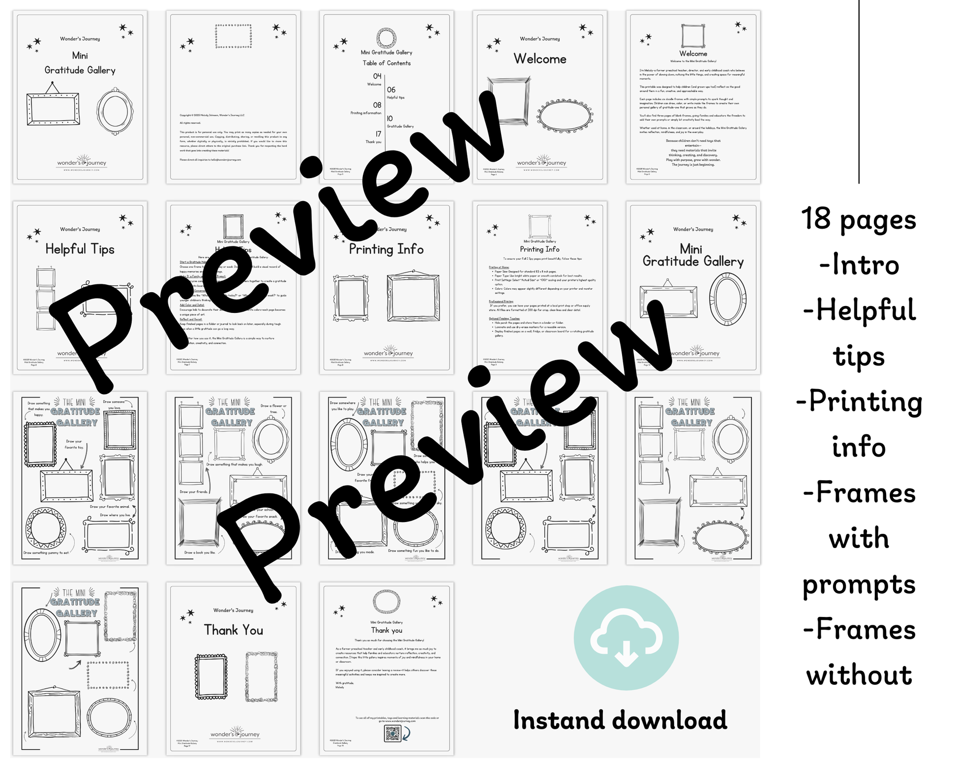 The Mini Gratitude Gallery is a printable activity that helps kids (and grown-ups!) pause, reflect, and express what they’re thankful for. Designed like a mini art museum, each doodle frame invites you to read a gratitude prompt and draw a matching picture — perfect for Thanksgiving or any day you want to slow down and celebrate life’s small joys.